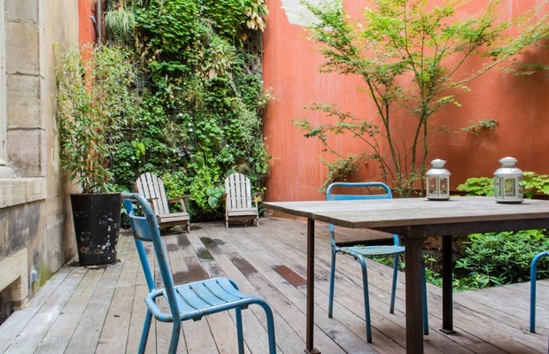 - Jardin-terrasse privatif entièrement clos, mur végétal, table et chaises pour dîner dehors : un havre de paix en pleine ville
