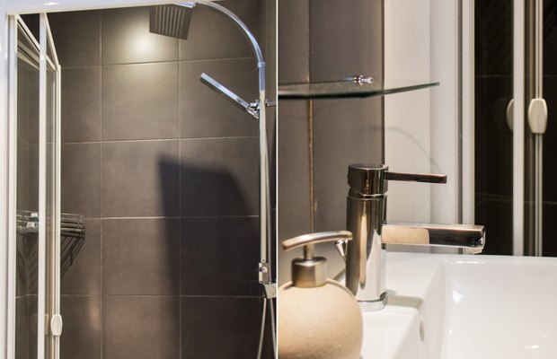 En-suite lavatory equipped with a large shower. 4 stars.